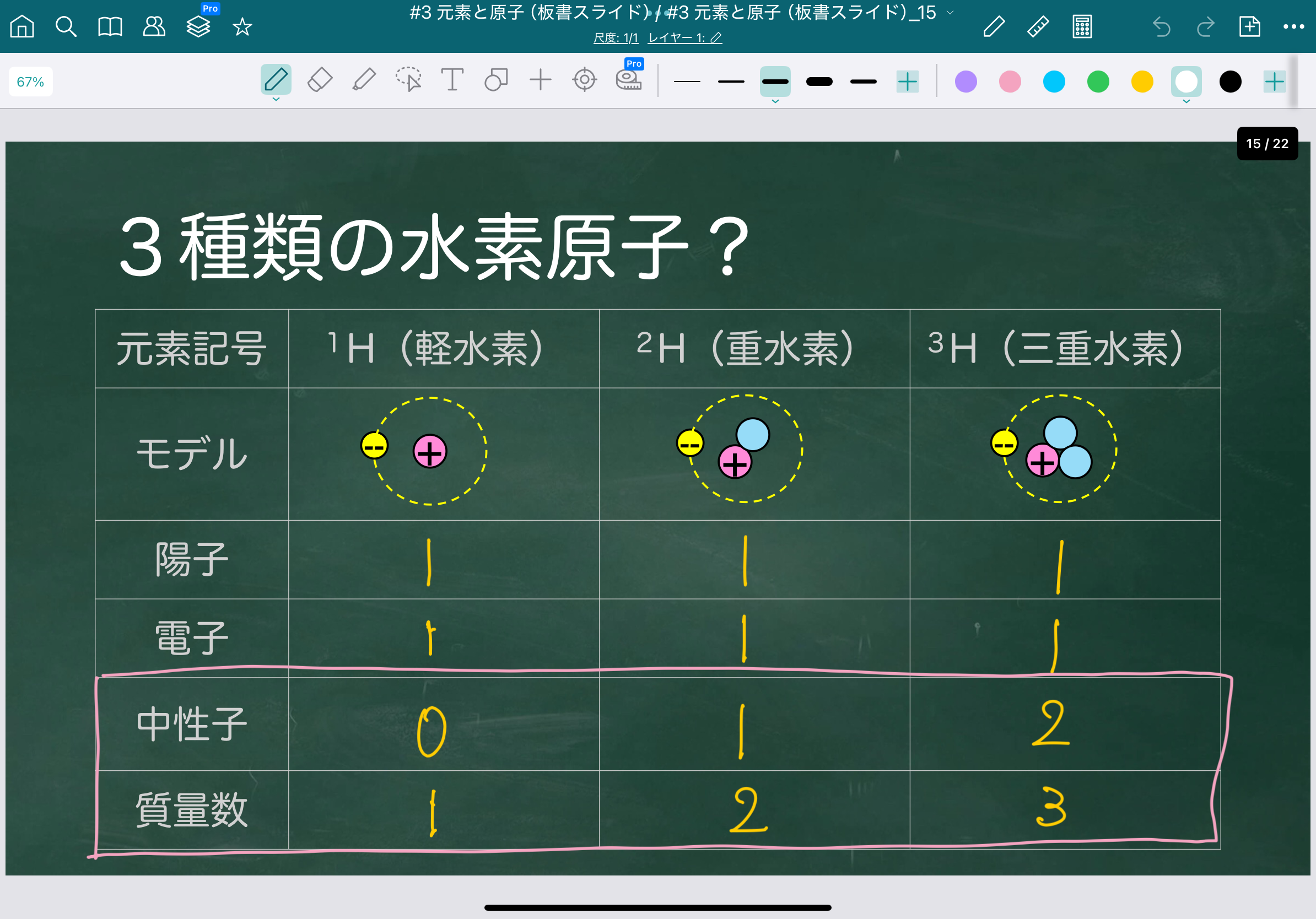 これらは同じ「水素」という元素ですが、中性子の数が異なるため、互いに 同位体(アイソトープ) と呼ばれます。