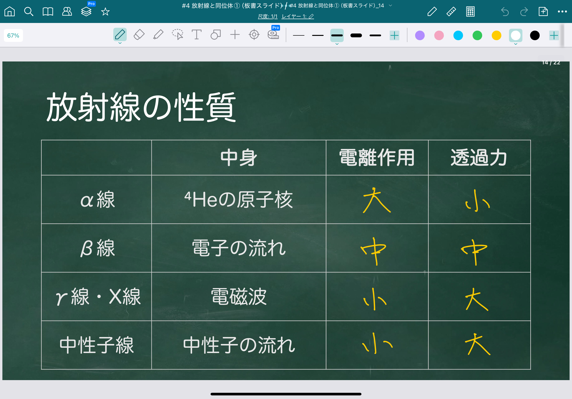 そして、放射線の種類によって 電離作用の強さ と 透過性 は大きく異なります。